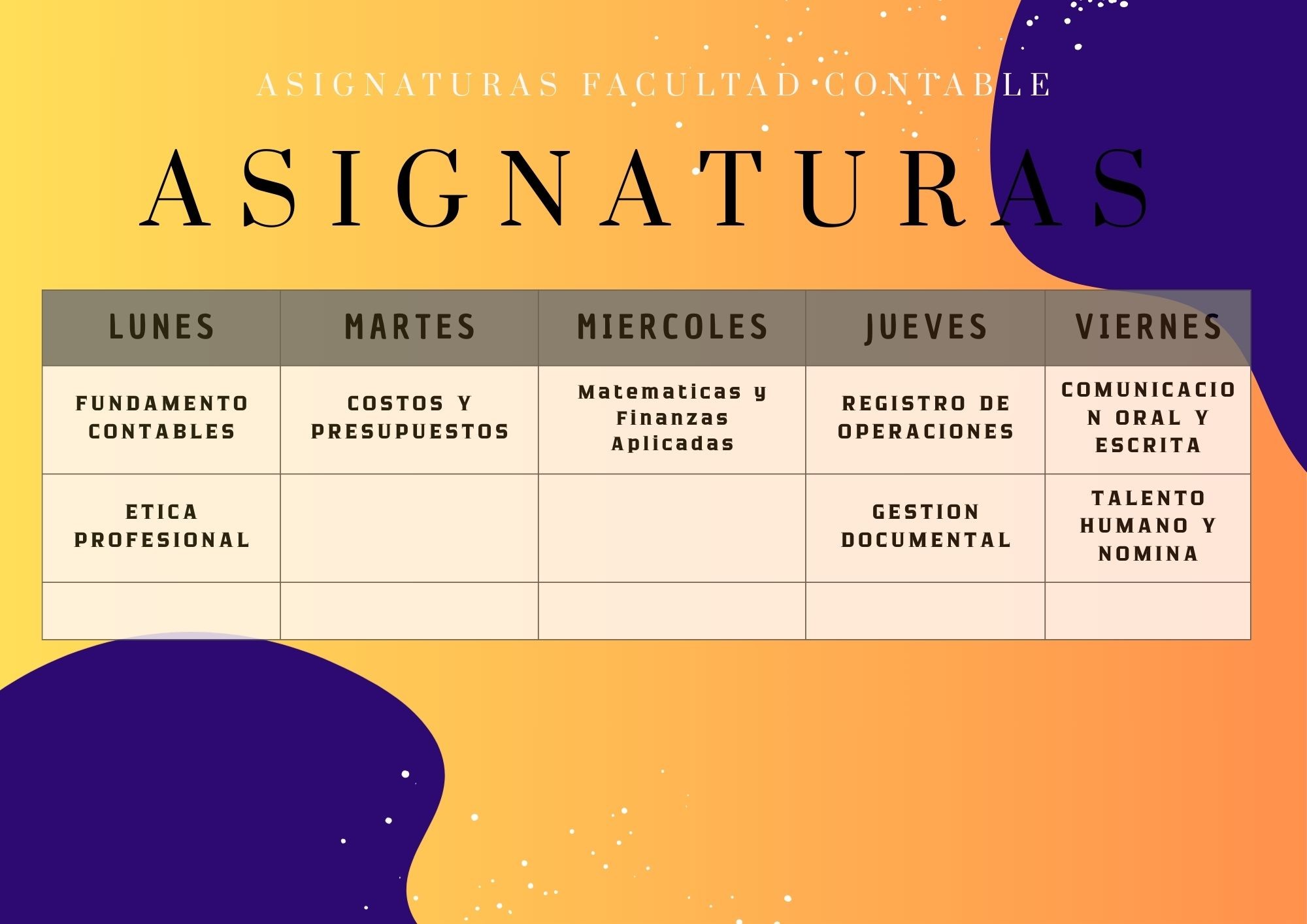 ASIGNATURAS FAC CONTABLE Y FINANCIERA